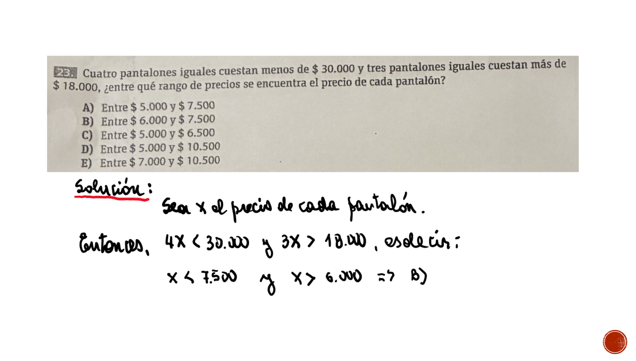Evaluación tipo Matemática